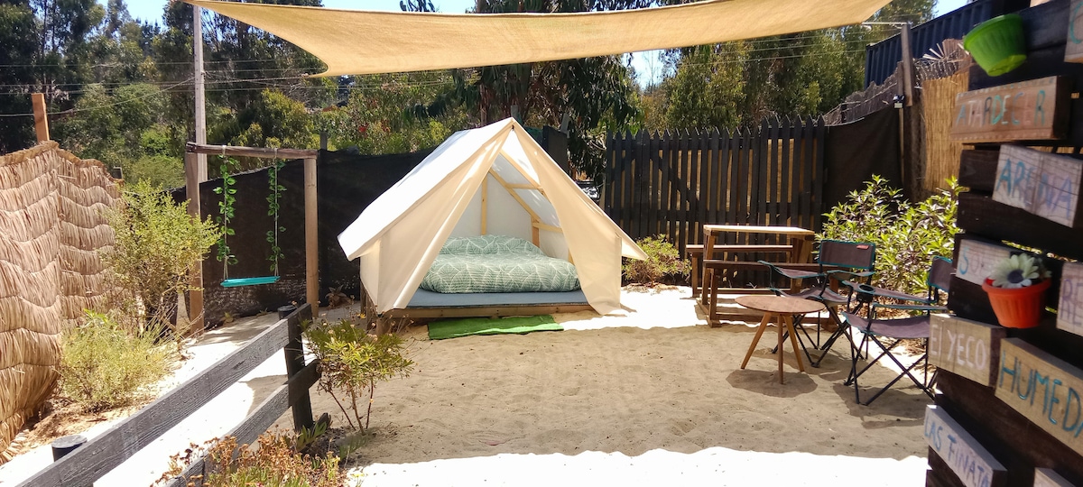 Aldea Zen de Quincho La Mestiza ofrece lo mejor del camping, sin el esfuerzo del camping. 3 carpas disponibles insertas en las faldas del Cerro La Mestiza en Catapilco. Todas están equipadas con camas, sábanas, cobijas, y kit de energía solar. Cuenta con 3 baños con ducha, agua caliente y toalla personal. Los huéspedes tienen acceso a quincho con parrilla, piscina y hot tub (valor adicional). Quincho La Mestiza se encuentra ubicado a 15 minutos de Catapilco y a 30 minutos de la costa.
