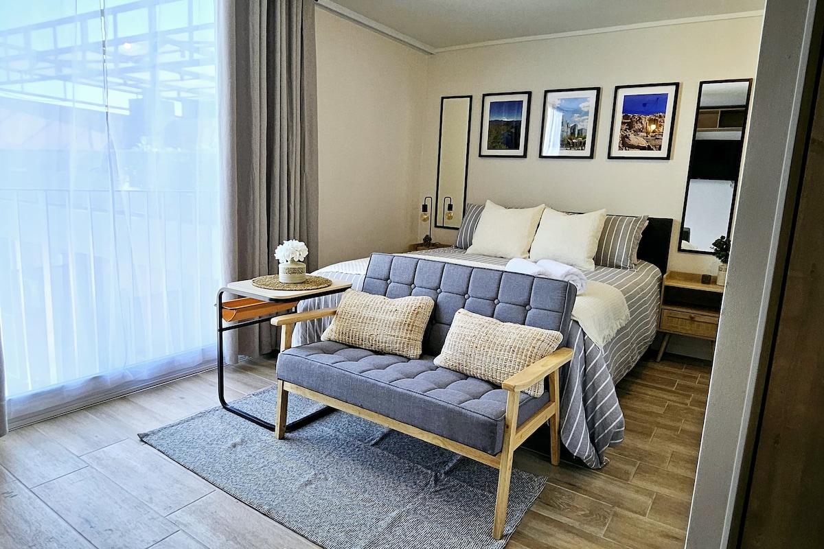 JC APART HOTEL Disfruta de una estadía cómoda en el corazón de Providencia. Moderno departamento de una habitación con cocina equipada y wifi gratuito. Incluye limpieza diaria acotada (sin lavado de platos). Estacionamiento disponible y mascotas bienvenidas con un pequeño fee. Ideal para parejas, familias o viajeros por trabajo que buscan confort y buena ubicación.