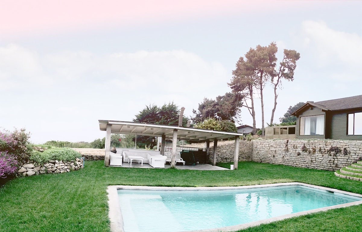 Historic ocean front beach cottage, large pool, ocean view, fireplace in living room and mr bedroom, full kitchen, BBQ, parking, very cozy. Amazing sea bird watching, dolphins, sea lions. Private stairs to La Boca Surf Beach. Practice Surf, S.U.P., kayak, fishing, summing, visit famous Concon Dunes, pubs and restaurants in 10 miles of beach: Amarilla, Renaca, Yacht Club Higuerillas. Ideal to enjoy Vina del Mar, Valparaiso, Renaca, Concon, Casablanca wine country.
