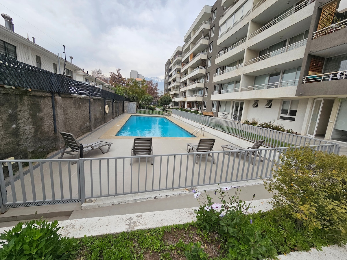 Este elegante alojamiento es ideal para viajes en grupo para hasta 4 personas. -Cerca de Metro Irarrázaval. - Estacionamiento gratis - Auto check-in - Aire acondicionado y calefacción split inverter - Cafeteras - Vajilla completa para cocinar - Cama queen con colchón premium marca CIC - Sofá cama amplio ( caben dos adultos) - Toallas y ropa de cama - Gimnasio de 3 pisos - Piscina disponible noviembre a marzo. - Smart TV en living y dormitorio - Ventanas termo panel PVC