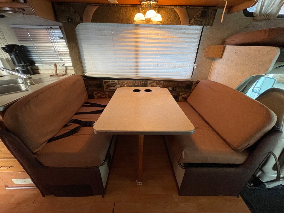 Vive la experiencia única de alojar en una casa rodante americana con las máximas comodidades. Cocina full equipada, living comedor, un baño interior y otro exterior propio con llave propia. Dispone de 1 cama matrimonial, 1 habitación con cama 1.5 plaza y sillón cama de cuero 1 plaza y otro sillón de 1 plaza en living. Ideal para 5 personas cómodas con OPCIÓN para un par más (favor consultar antes). Terraza exterior full equipada 1er piso y terraza panorámica 2do piso con pasto sintético.