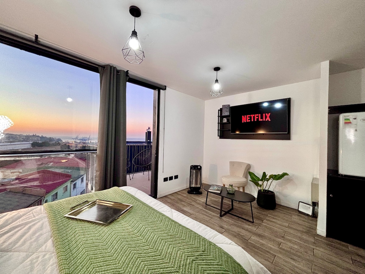 Vive Valparaíso como nunca antes Descansa en un espacio moderno y acogedor, creado para que encuentres la calma que necesitas en pleno corazón de la ciudad. Disfruta de la historia porteña, sus cerros llenos de vida y la vista al mar. WiFi de alta velocidad (500 Mbps), ideal para teletrabajo. Terraza panorámica con vistas al cerro y al mar. Estacionamiento privado. Condominio con seguridad 24/7. Excelente conectividad para moverte entre Valparaíso, Viña del Mar y alrrededores.