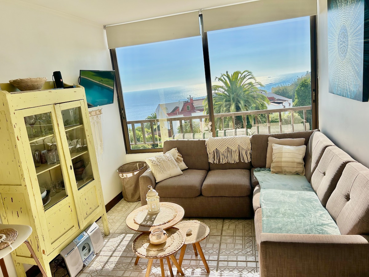 Apartamento con chapa electrónica , wifi fibra óptica , cable, acogedor , cálido , luminoso, con estacionamiento privado techado, terraza con comedor y living, hermosa vista al mar, condominio cuenta con lavanderia en su interior, también condominio posee , gimnasio , piscina climatizada, quincho , frente de la playa , cruzas la calle y estas en Playa Cochoa. En Avenida Borgoño locales comerciales , y los mejores restaurantes. Sales del lugar y tienes varios restaurantes.