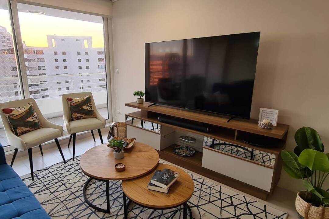 Modern and bright apartment in the best area of Viña del Mar. Steps from the beach, restaurants, cafes, and the city's casino. Ideal for couples and families looking for comfort. Perfect location to enjoy the city without having to use a car. It features a fully equipped kitchen, Wi-Fi, a heated pool, and a barbecue area that can be reserved exclusively for the apartment.