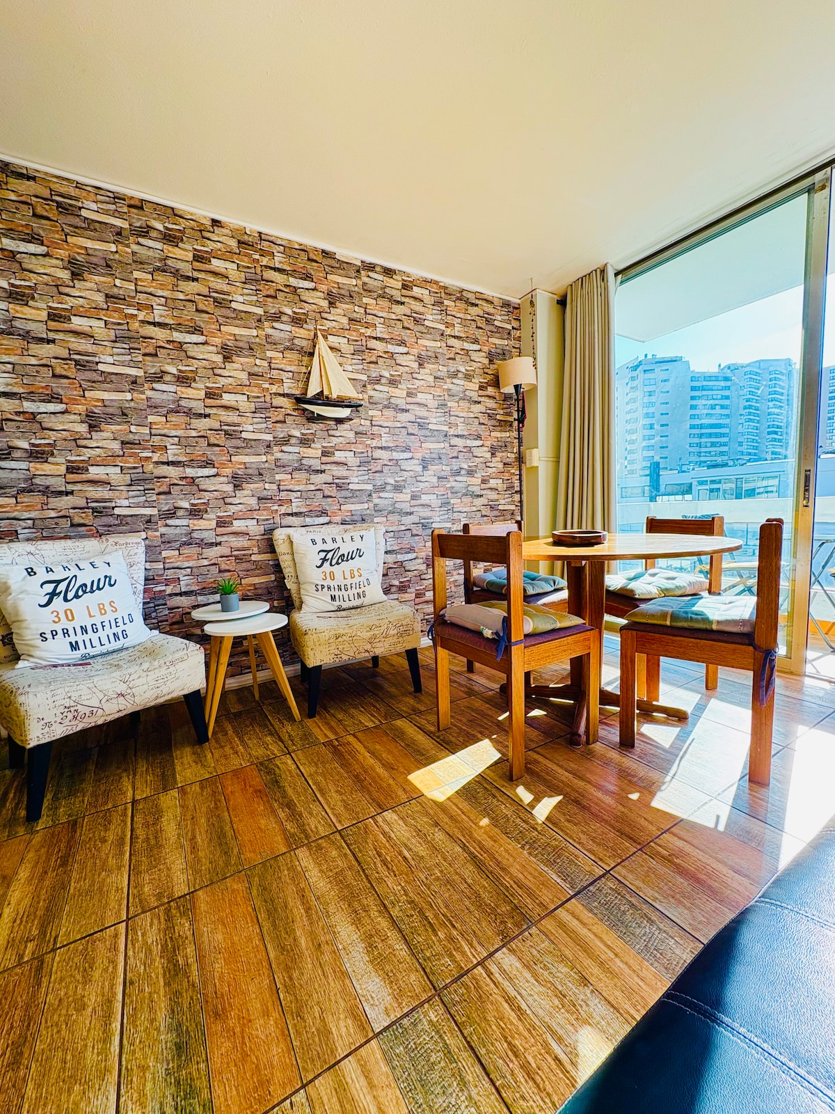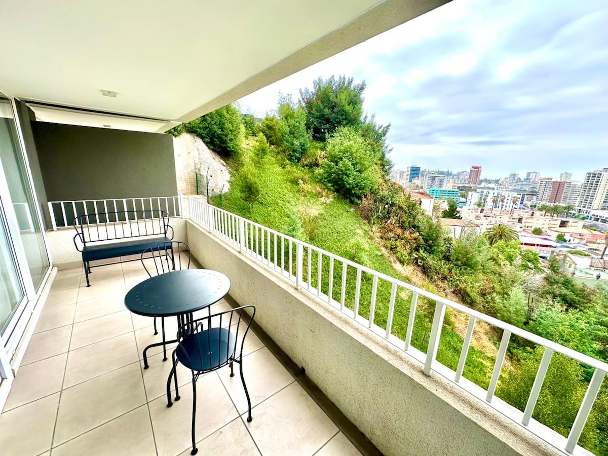 Departamento remodelado en pleno centro del área turística y gastronómica de Viña del Mar. Es un ambiente tranquilo y sin ruidos, con una decoración moderna y alegre, pensado para personas que gusten del aire libre, los buenos restaurantes, el Casino y la playa.