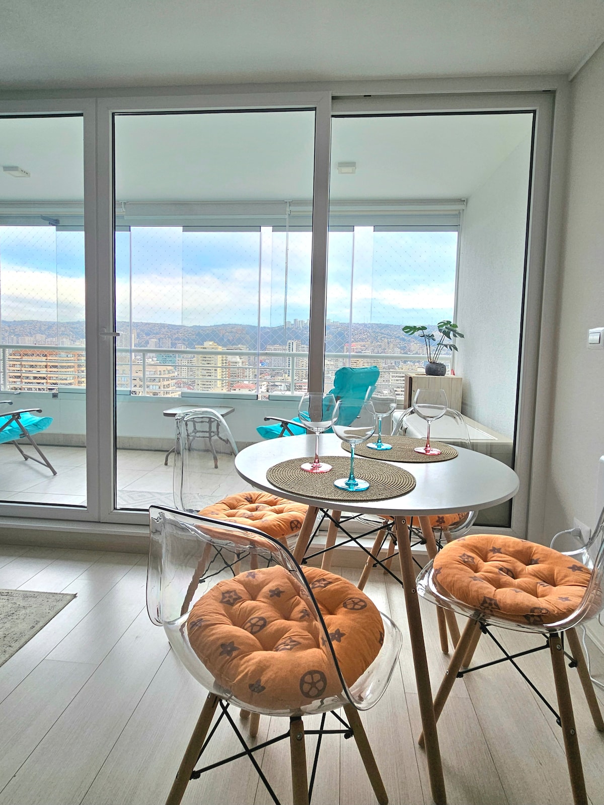 🤩COMFORTABLE AND NEW🤩 Apartment by the beach, 17 floor 🅿️Free Parking ✅Pool additional payment, 1 courtesy income 🏋🏻Gym 💨Sauna additional payment 😉Beautiful view of the city of Viña ✅It has heating and everything necessary for a comfortable stay 🔔Access by electronic lock 🚨No visits can be received ‼️All guests must register your ID to enter 🚭Prohibited smoking 📦We receive your online purchases
