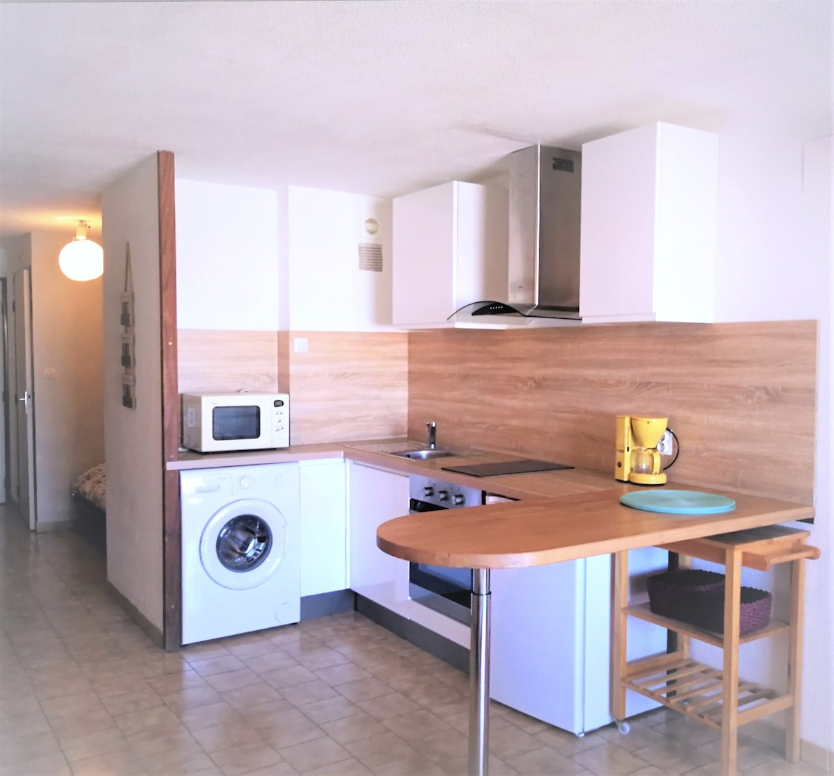Charmant studio avec vue sur la mer et le port. Au 1er étage d'une résidence calme avec ascenseur. À 200m de la plage et du centre de Valras avec commerces et restaurants. Agréable loggia aménagée pour la détente. Salle de bain avec douche. WC séparé. Télévision. Grand combiné frigo-congélateur. Canapé convertible BZ en 140, 2 places. Lit pliant bébé sur demande, pour enfant de moins de 3 ans. Les draps et serviettes sont fournis si vous le souhaitez. Ménage du départ à faire par le voyageur.