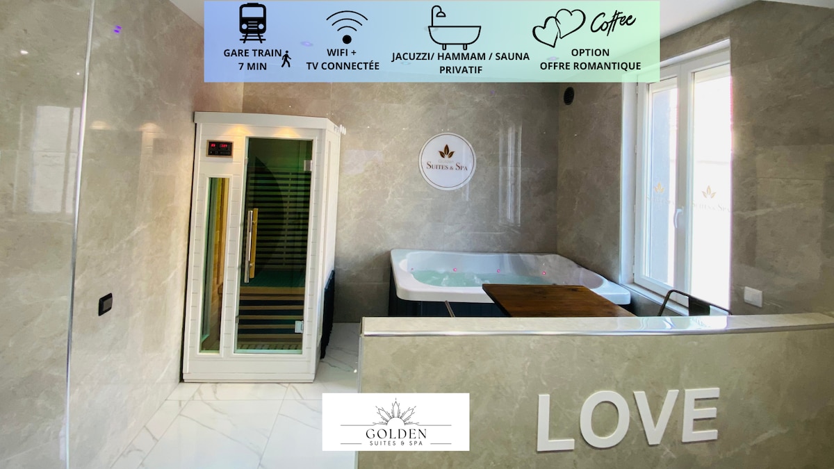 💞 La Villa des Charmes invites you to a romantic and sensual getaway. This 110 m2 luxury love room combines elegance and discretion: indoor jacuzzi, sauna, massage table, pole dance bar and secret room with a captivating design, all in the heart of a lush garden. An ideal place to rekindle passion in complete privacy. 🌹