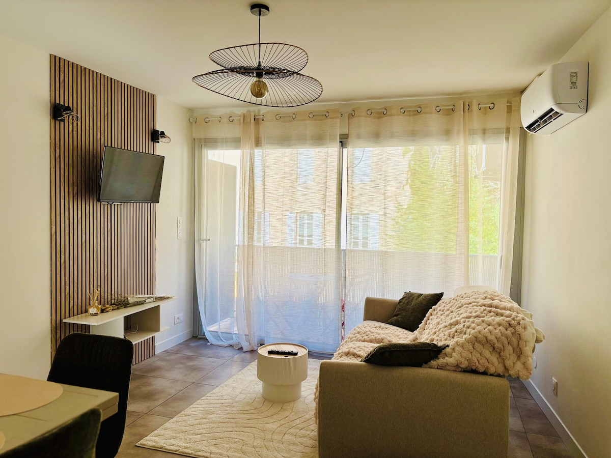 Studio climatisé de 25 m2 totalement rénové au 2 ème étage sans ascenseur, parking gratuit à proximité ! à 3 minutes de la place du château ! ce logement comprend : une cuisine équipée ( four micro onde grill, frigo, plaques de cuisson, cafetière), un coin bureau, un espace salon avec tv, un espace nuit, salle de bain et WC séparé. serviettes de toilette fournies, draps fournis, torchons, quelques dosettes de café et de thé fournies