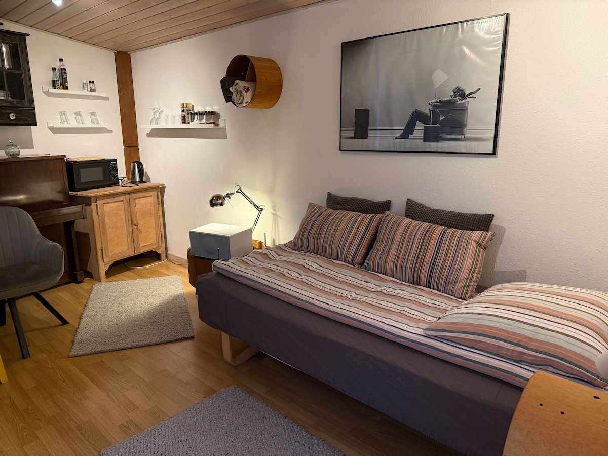 Cozy apartment on the first floor with a private entrance, just 10 minutes from the E45 highway. All the essentials for daily life are provided. Always freshly washed bed linen, cleaned with Neutral Sensitive Skin – a hypoallergenic detergent. Various cozy blankets, cushions, a daybed, and two desks for work or study. You are more than welcome! 😊