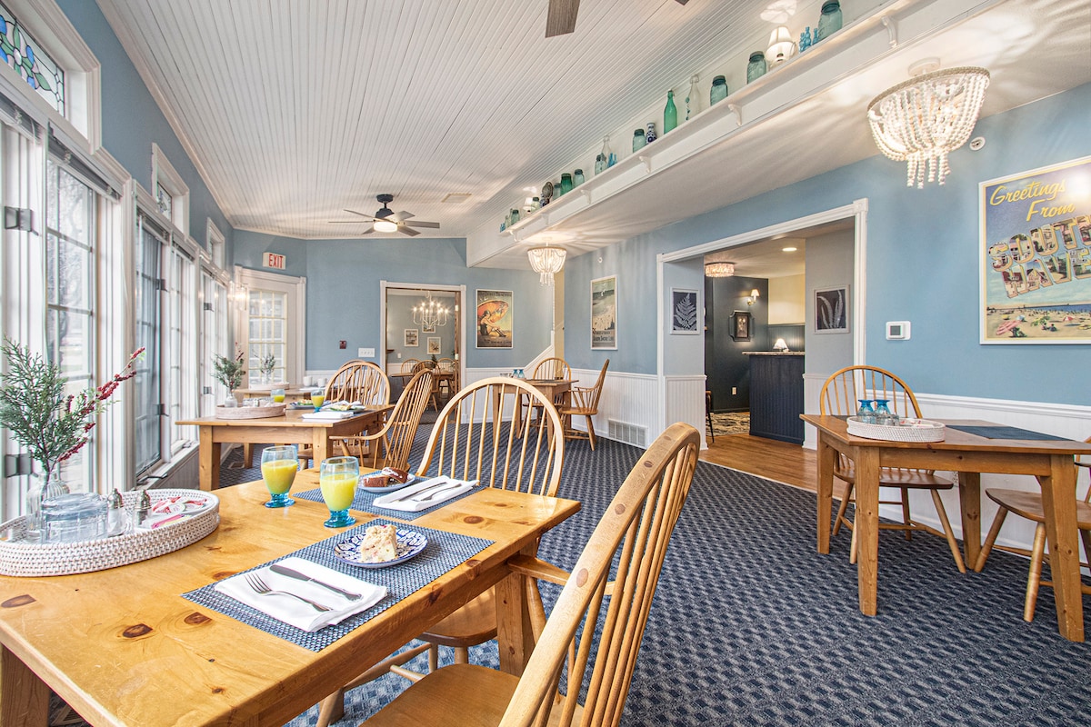Perfectly located in the heart of South Haven. Inn at the Park offers quick access to the beach, shopping, dining and all the area has to offer. Just a short stroll to the beach to soak in those amazing Lake Michigan sunsets or pop across the street to the Maritime Museum for a boat tour. Start each day with a farm-to-table breakfast and fresh daily baked cakes. Explore the lush gardens or grab a glass of vino and relax by the outdoor fireplace to end a relaxing day. Book, Stay & Dine!!!