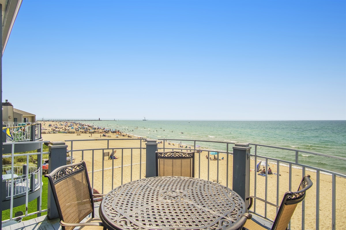 Enjoy this bright and spacious 2 bed/2 bath condo located on the "Golden Mile". The nearest public beach, a mere 8 houses away, provides lots of fun to enjoy beach play, long walks, and beautiful sunsets that South Haven is known for. On cool nights cozy up to your private balcony fire table. A Vitamix allows for morning smoothies and evening frozen cocktails! Two on-site parking spaces included. Ideal for 4-6 people with king and queen mattresses and a queen size air mattress at your disposal.