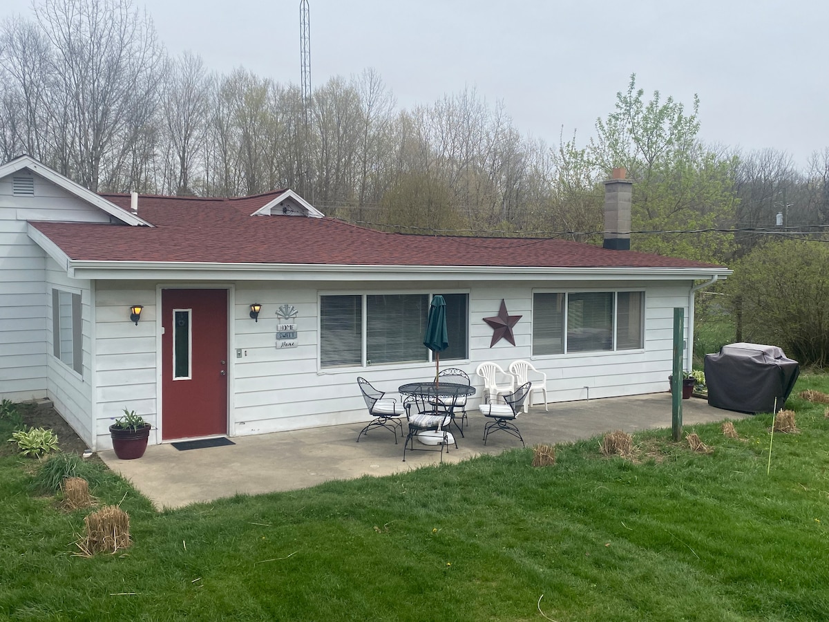 leisurely mile from 🐩 friendly Lake Michigan beach, HOT TUB 🥵 AVAILABLE! our stylish home offers a perfect blend of comfort and charm. 3 bedrooms, 1 bath, charcoal grill, picnic table and Wi-Fi. Unwind in the hot tub on crisp evenings under starlit skies. Explore local wineries, parks, lakes, and quaint shops, or dine at nearby restaurants. Relax on the stunning beaches and enjoy the tranquility of our quiet country setting. 15 minutes from St. Joseph and 18 from South Haven.