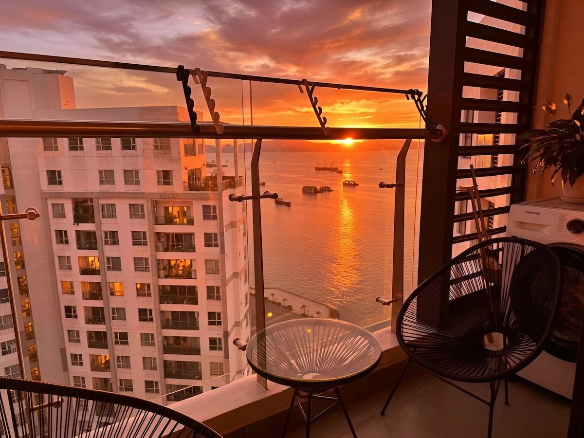 Căn hộ 2PN cao cấp 70m², căn góc với view biển trực diện, ngắm hoàng hôn từ ban công phòng khách và phòng ngủ. 2WC có bồn tắm, thiết kế hiện đại, nội thất sang trọng chuẩn 5⭐, từng vận hành bởi Best Western. Phòng King view biển, phòng Queen thoáng mát, phòng khách rộng kết nối ban công, bếp đầy đủ tiện nghi. Máy giặt, tủ lạnh, Wi-Fi, hồ bơi, gym, khu vui chơi trẻ em, bãi đỗ xe, lễ tân 24/7. Phù hợp cặp đôi, gia đình, nhóm bạn, khách công tác.