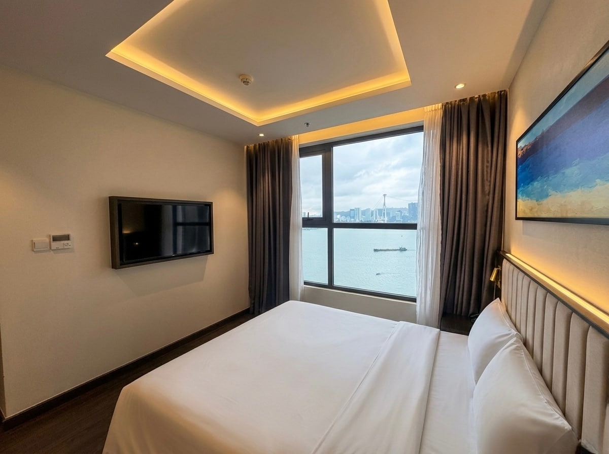 The Sapphire Ha Long – Premier Bayview Suite - Located in the S2-Sapphire Halong complex, right in the heart of Ha Long city. - Cozy & Elegant: Corner unit on the 27th floor, featuring 2 bedrooms & living area, all with stunning views. - Breathtaking Views: Step onto the balcony to enjoy sunrise over the bay and charming fishing ports. - Full Amenities: Aircon, Wi-fi, TV, fully equipped kitchen, swimming pool, and secure parking for a comfortable stay. Convenient: Near center city_5' to museum