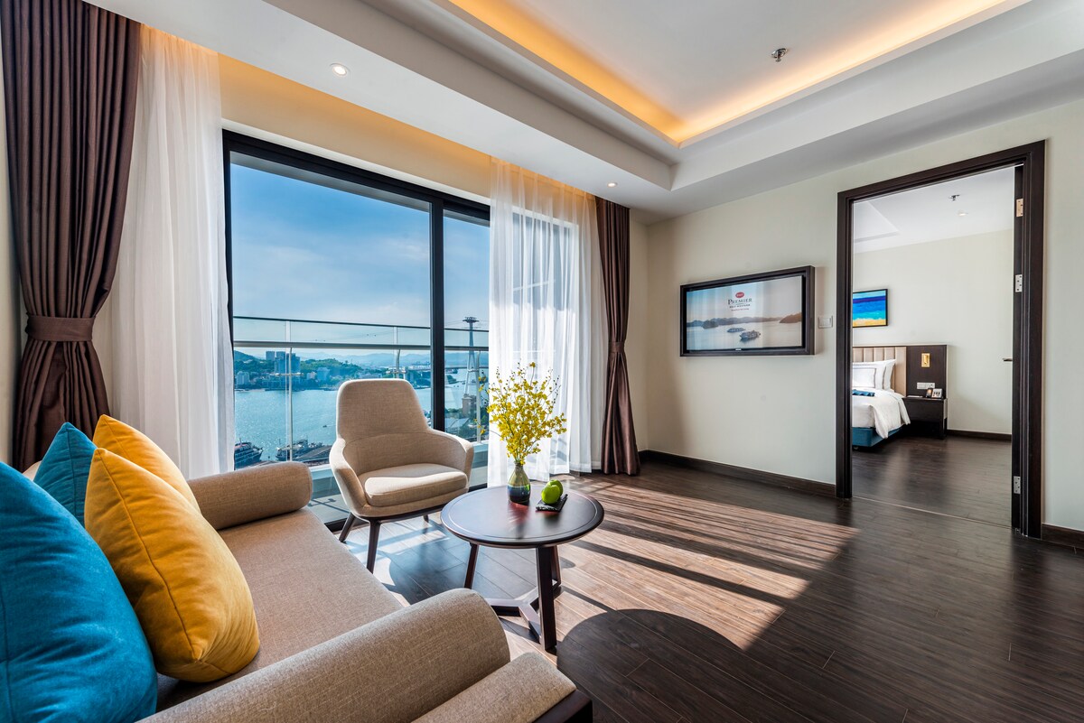Khách sạn nằm tại trung tâm Hạ Long ở cột đồng hồ.