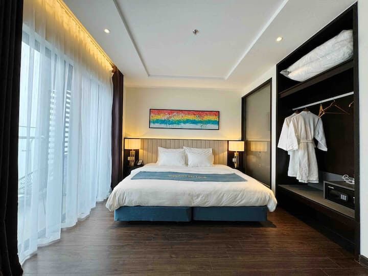 - The apartment has 3 bedrooms in Mid-Century style. - Widely - Internet entertainment television (Netflix, youtube ...) - Nice view - Clean, comfortable 5 minutes to move to the tourist and entertainment area: - HaLong Park; water park: 1km - Sunworld Pedestrian Street: 1km - Tourist pier: 3 km - Yoko Onsen Mineral Spring: 15 minutes - Sup paddle boarding service point: 10 minutes - Street of seafood restaurants around the building - 500m to the beach