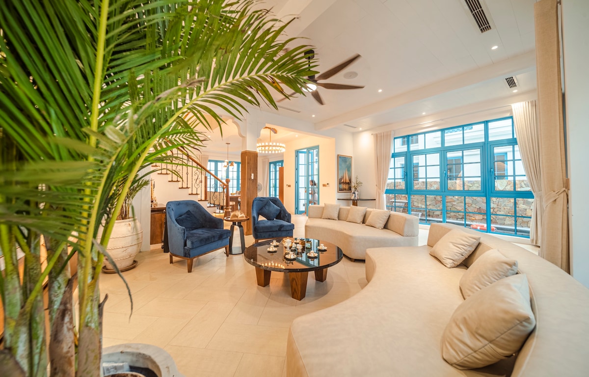 Our 6-bedroom 5.5-bath fully air-conditioned villa is located just 1 minute walk to Bai Chay beach, with easy access to top-visited tourist spots (Halong International Cruise Port, Sunworld Halong Complex, Ha Long Night Market,..) We offer high privacy with flexible sleep settings for your trip with families, friends or corporate stays with a high-end touch & a tranquil coastal vibe. Private transportation Day cruises in Halong. Sunworld park tickets. Catering services. Catba itineraries.