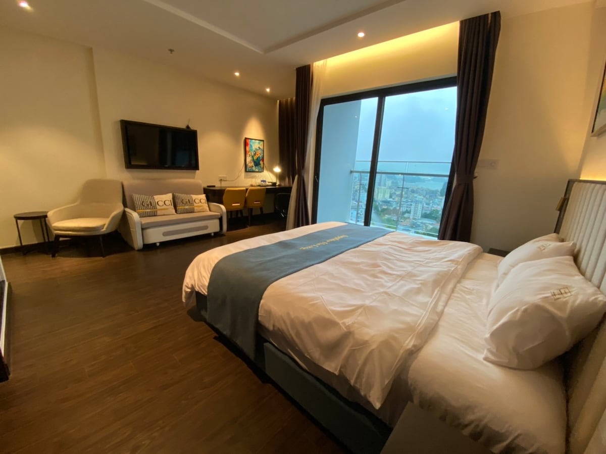 The Sapphire Ha Long – Premier Bayview Suite - Located in the S2-Sapphire Halong complex, right in the heart of Ha Long city. - Cozy & Elegant: Corner unit on the 27th floor, featuring 2 bedrooms & living area, all with stunning views. - Breathtaking Views: Step onto the balcony to enjoy sunrise over the bay and charming fishing ports. - Full Amenities: Aircon, Wi-fi, TV, fully equipped kitchen, swimming pool, and secure parking for a comfortable stay. Convenient: Near center city_5' to museum