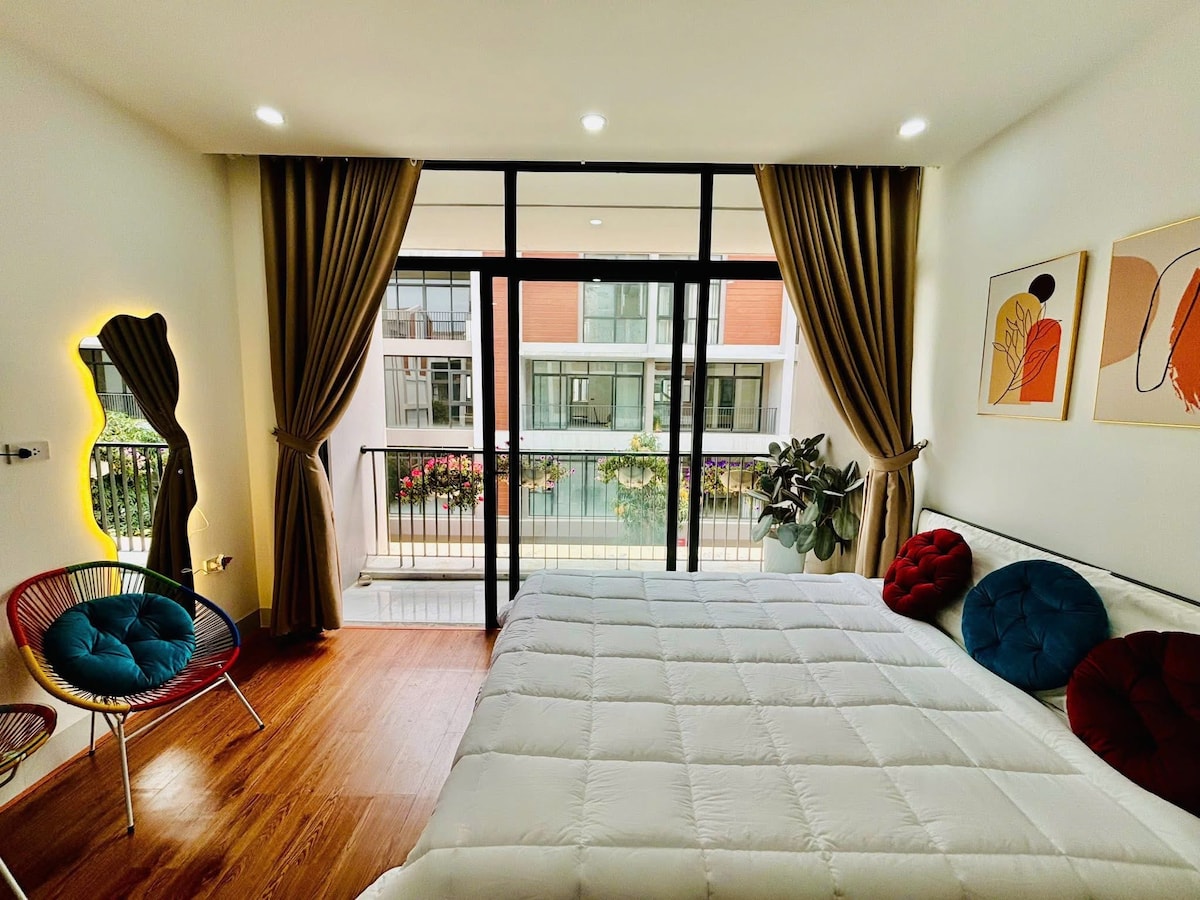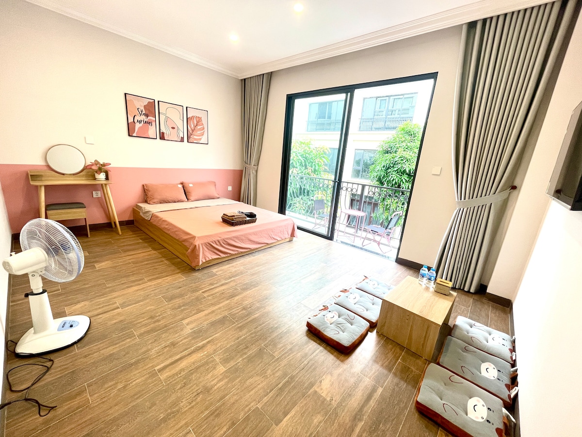 Nhà phong cách Nhật Bản, rộng 75m², ở được 8–10 người, vị trí lý tưởng ngay quảng trường K-Town. Không gian yên tĩnh, tiện nghi: wifi mạnh, máy chiếu xem phim cả nhà cùng chill, có service trà thư giãn như đang ở Nhật. Dưới nhà là tiệm thuê hanbok cao cấp, phụ kiện xịn do chủ nhà tự tay chọn từ Seoul. Từ đây, đi bộ 5 phút đến Lan Quế Phường (Chinatown), 5 phút tới Venice Grand World, 10 phút tới VinWonders Hanoi Water Park!