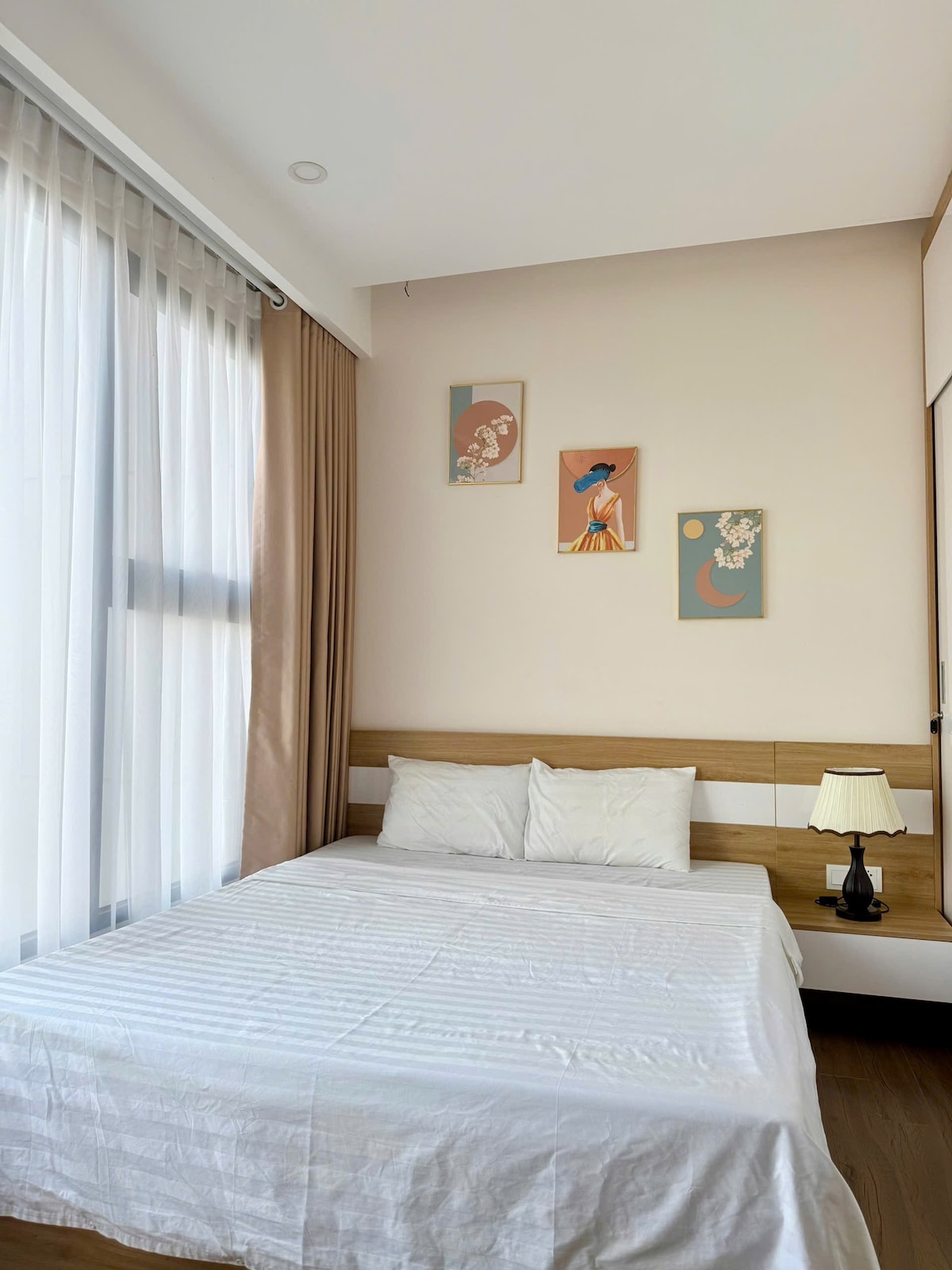 Căn hộ được thiết kế sang trọng, tràn ngập ánh sáng với cửa kính toàn cảnh nhìn ra hồ và thành phố. Phòng tắm nổi bật với bồn tắm lớn đặt cạnh cửa sổ, cây xanh tạo cảm giác thư giãn như resort. Phòng ngủ tinh tế, gọn gàng với gam màu nhẹ nhàng, view thoáng đãng và đầy đủ tiện nghi. Đây là không gian lý tưởng để nghỉ dưỡng và tận hưởng sự riêng tư, thoải mái.