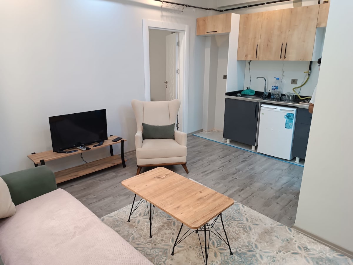 Dairemiz küçük olmasına karşın bütün olanaklar bulunmakta 1 adet çift kişilik 2 adet tek kişilik yatak mevcuttur 4 kişi rahatlıkla konaklayabilir merkezi bir konumda yer alıp istediğiniz her şeye 5 dakika içerisinde ulaşabilirsiniz.