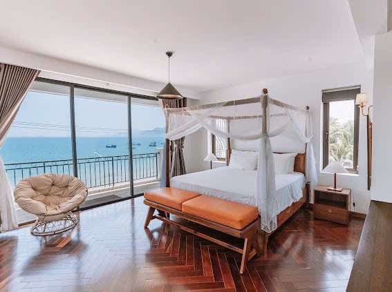 Villa 6 phòng ngủ, nằm sát bờ biển, nằm trong một làng chài thơ mộng với cuộc sống của người dân làng chài hằng ngày chài lưới Bạn chỉ cần bước ra ngoài ban công có thể phóng tầm nhìn ra đại dương, chỉ cân bước chân qua đường là bãi cát trắng thơ mộng với những người dân biển đang chài lưới cách đó vài bước chân, Villa với hồ bơi riêng, bên cạnh có khu vực lò nướng BBQ thích hợp cho những buổi tiệc bên cạnh hồ bơi với tầm nhín thẳng ra đại dương