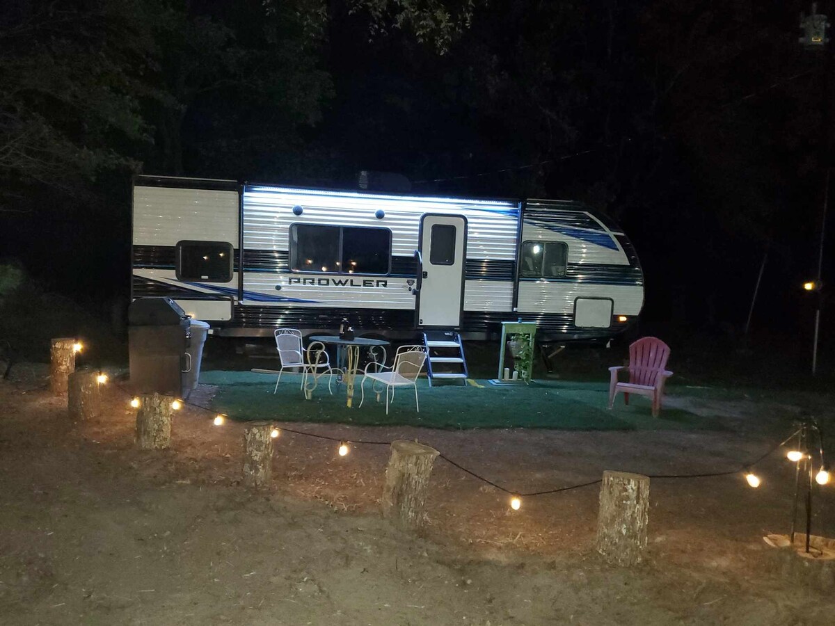 After a long day of shopping come and relax in this 32 ft RV located 3 miles from Trade Days. It is a private and separate unit, and can sleep 6 adults comfortably. Possibly more depending on your needs. Master in front and a bunk house in back. The bathroom separates the master from the main area. A full kitchen with the basics to prepare your food. Complimentary coffee, Wi-Fi and Smart TVs. There is an outside sitting area to enjoy your coffee or a glass of wine, at the end of the day.