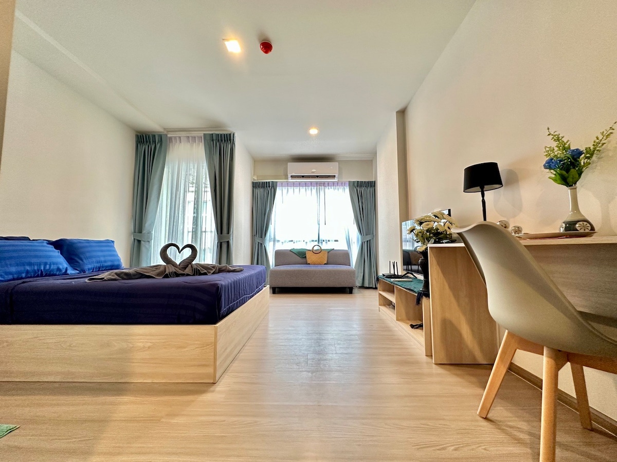 Welcome to a stylish newly built one bedroom condo. Fully furnished with modern luxury with pool view. The cozy bedroom prepare with fully comfort king bed mattress. The space offer a brand-new kitchen equipment. There are 2 smart TVs for living and bedroom. The room space is 50 sq.m. short walk to the beach, Cicada market and tamarind market. Many restaurants nearby. Wifi max speed with 300/300 mbps. Nespresso coffee machine provided. This room is perfect for your leisure or business.