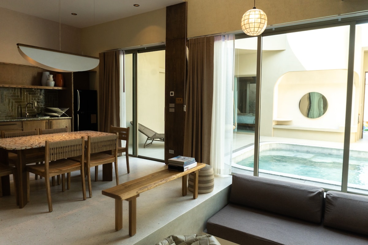 Imagine stepping into a private pool villa where every detail exudes designer flair—a seamless blend of luxury, style, and tranquility. This 2-bedroom pool villa is situated in a boutique hotel which includes daily in room full-course breakfast, room service, and housekeeping. Villa highlights - Star-lit pool with high walls for ultimate privacy - Double Volume living space with conversation pit - Huge master bathroom with skylight - Unique bunk bed set-up - 700 meters from the beach
