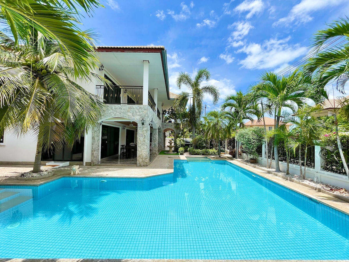 欢迎来到位于华欣市中心的私人泳池豪华别墅,别墅坐落在一个非常宁静,祥和的社区,距离24小时保安执勤门岗只有6米的距离。 别墅地理位置非常优越,拥有美丽的私人花园和超大泳池。两层别墅的设计为您提供宽敞舒适的居住空间,这栋别墅拥有3个卧室,4个卫生间,1个客厅,1个餐厅,1个厨房,2个露台,1个休息区,1个户外就餐区,1个烧烤区,1个泳池,1个浴缸,1个停车位。 当然,宁静并不意味缺乏服务和便利 距离大海直线距离1.5公里(驾车5-8分钟) 距离出租车停靠点50米 距离饭店100米 距离小超市200米 距离菜市场600米 距离7-11便利店750米 距离VanaNava Waterpark1.2公里 距离购物中心BLUPORT3.4公里 距离曼谷医院3.6公里 我们为您提供旅程所需的一切设施,包括并不限于厨房用品,床上用品,便利设施,一次性拖鞋,一次性马桶垫,电子驱蚊器,吹风机,各种酒具,急救药品,指甲刀,针线,简易修理工具,聚会游戏,书籍等。 希望您在这栋别墅中,度过一个美好的假期!