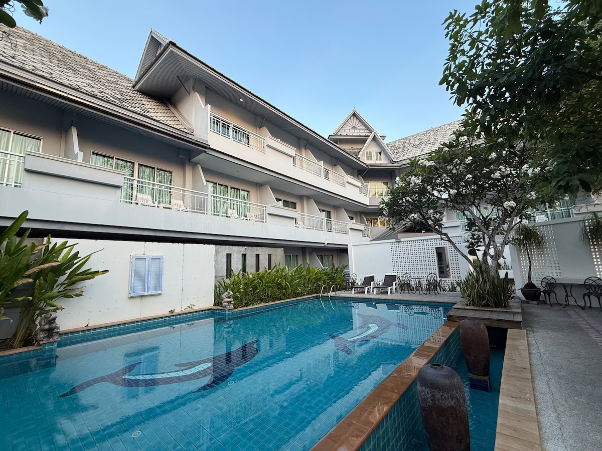 🏝️ Private cozy room in the heart of Hua Hin! Fully equipped with all essentials for a comfortable stay. Enjoy an on-site restaurant, swimming pool, and spacious parking. Only 1.9 km to the beach! 7-Eleven is right in front of the hotel for easy shopping. 🛒 Motorbike rental available — explore Hua Hin with ease! 🛵 Perfect for couples, families & travelers who want convenience and comfort. 💙