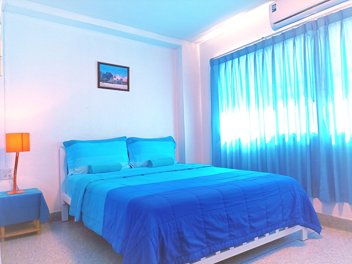 ห้องพักขนาด24ตร.ม.(ห้องน้ำในตัว) ทำความสะอาดด้วยน้ำยาฆ่าเชื้อแบคทีเรียและไวรัส อุปกรณ์เครื่องใช้ครบครัน+แอร์+เครื่องทำน้ำอุ่น+ตู้เย็น+ทีวี ฟรีไวไฟ ไม่มีที่จอดรถ ห่างจากตลาดซิคาด้า150เมตร