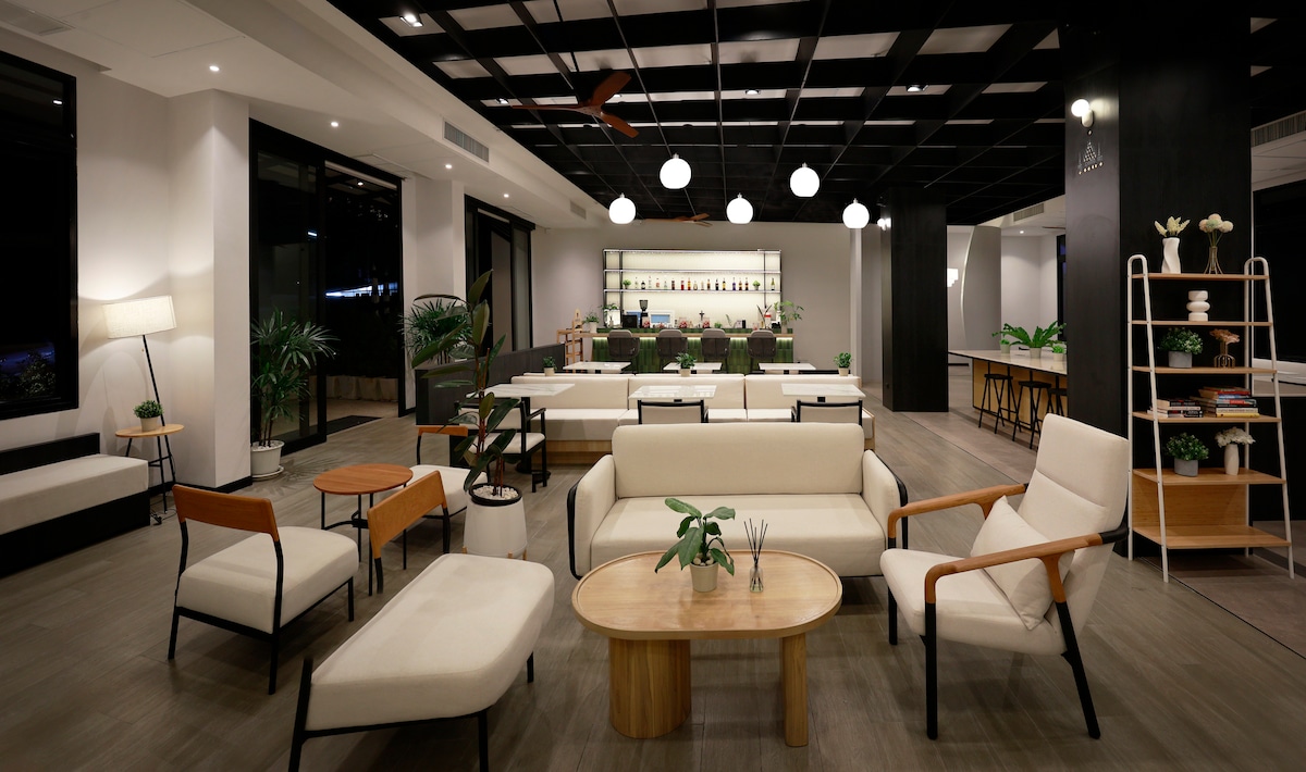 Enjoy a stylish experience at this centrally-located apartment with panoramic view. Only 3 mins walk to Hua Hin Beach, 2 mins walk from Cicada Market and Tamarind Food Market. Chill out by a fantastic pool, or in Havana inspired lobby and garden area. Other facilities include a well equipped gym, laundry room, a playground for children, and an organic edible garden roof terrace.