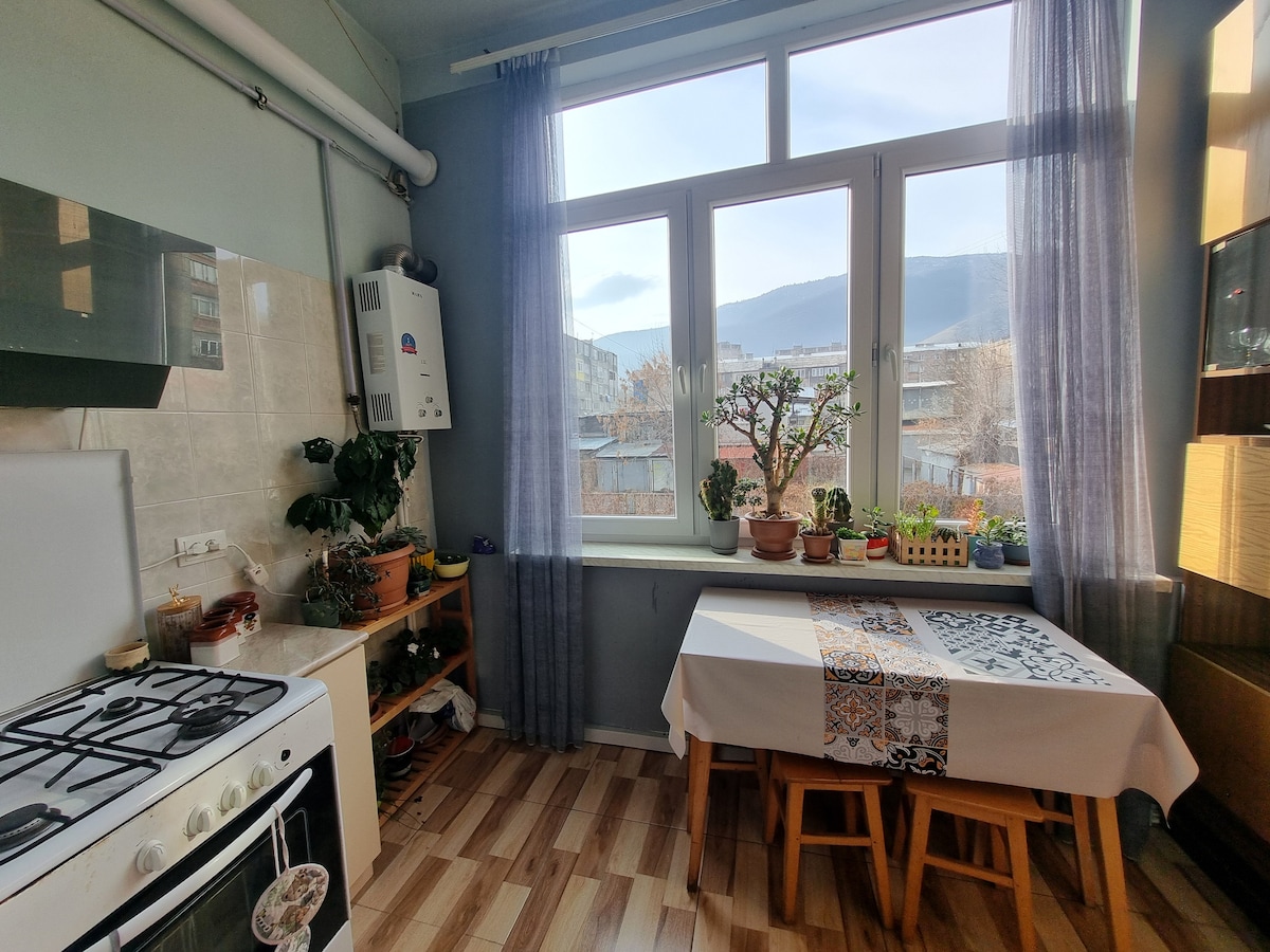 The apartment is in the heart of Vanadzor only 2 min away from the central square. Excellent access to a variety of grocery shops and vegetable stands. Several minutes' walk to cafes and restaurants. The home maintains all of the decoration, content and living arrangements of the owners and can give a complete immersion into the inside Vanadzor everyday dynamics.
