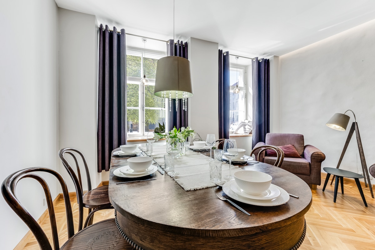Enjoy a comfortable stay at this fabulously centrally-located studio just steps from the Old Town square. Explore vibrant cafes, restaurants, museums and shopping right on your doorstep. This cozy apartment is peaceful, well-equipped, with a shower room, kitchen, washer, dryer, an area for working and a separate room for dining, reading, relaxing. Designer touches and finishes like limestone floors and natural marble counters add a touch of luxe to this gem of a studio. Enhanced cleaning incl.