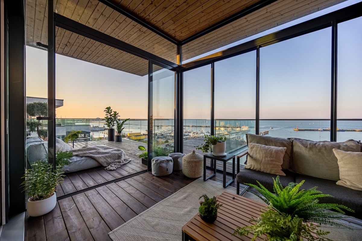 豪华顶层公寓,可欣赏日落海景@ Noblessner