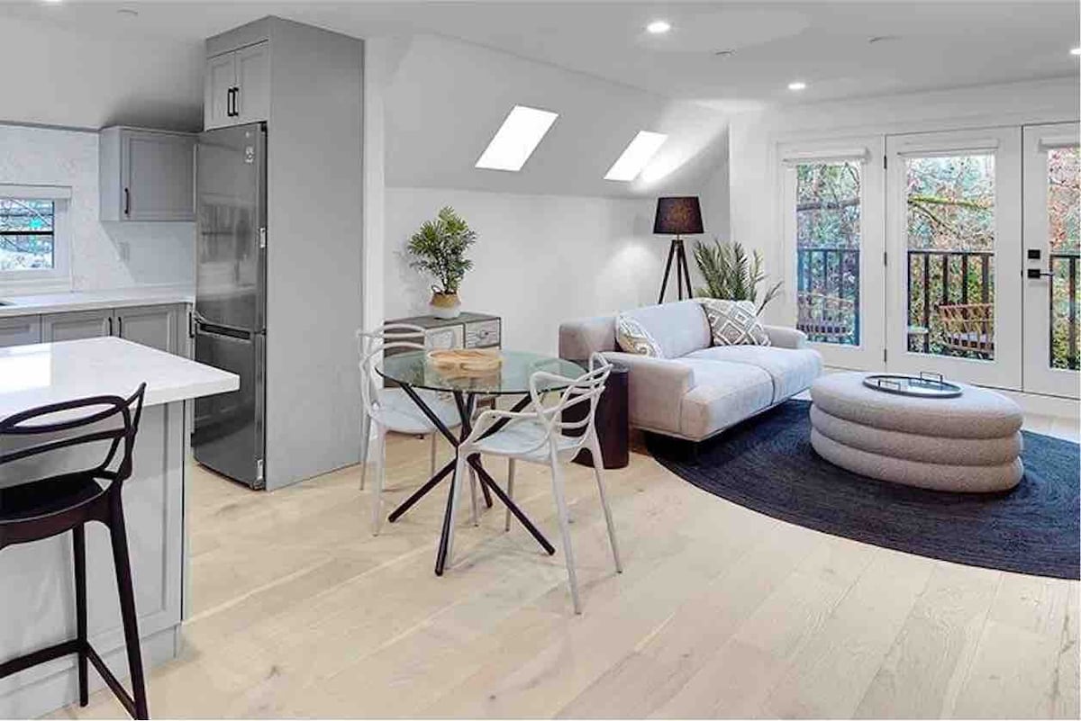Modern comfort & cozy charm await you in this loft guest house. With an inviting cabin-style gas fireplace & king size bed, it's the ideal space to relax after a day of exploring! This self contained home has a full kitchen, private patio & modern bathroom with tub. Nestled just off vibrant Commercial Drive, you’re steps away from Vancouver’s best restaurants, bars & boutique shops. And Skytrain is just a 7 min walk away. Where modern style meets cozy warmth, we look forward to hosting you!