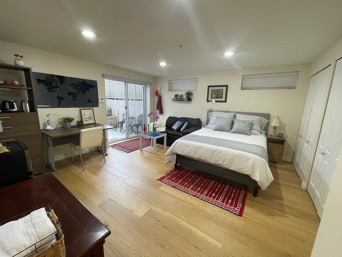 We are happy to welcome you to our quiet, friendly one room live/work studio tucked into an urban garden. Please spice up your dinner with herbs from the garden! We are located in East Vancouver and are a short walk from coffee shops and restaurants. FIFA games will be projected on a large screen at the PNE a seven minute walk away. We are about 45 min. from YVR and 20 min. to the Alaska cruise terminal. Easy access to bicycle routes, the North Shore mountains, Whistler and BC's Interior.
