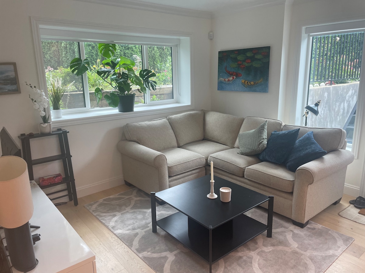 Welcome to Bluebell Suite, our cozy basement suite located in the charming and serene neighborhood of Vancouver's West Side. Just a few blocks from the vibrant West Broadway, our homely suite offers inviting and gracious accommodation for you and your family to enjoy while accessing all that Vancouver offers. Conveniently located, just a leisurely few-minute walk away from groceries, parks, and Starbucks. Just minutes of drive to UBC, beaches, Pacific Spirit Park, downtown and airport.