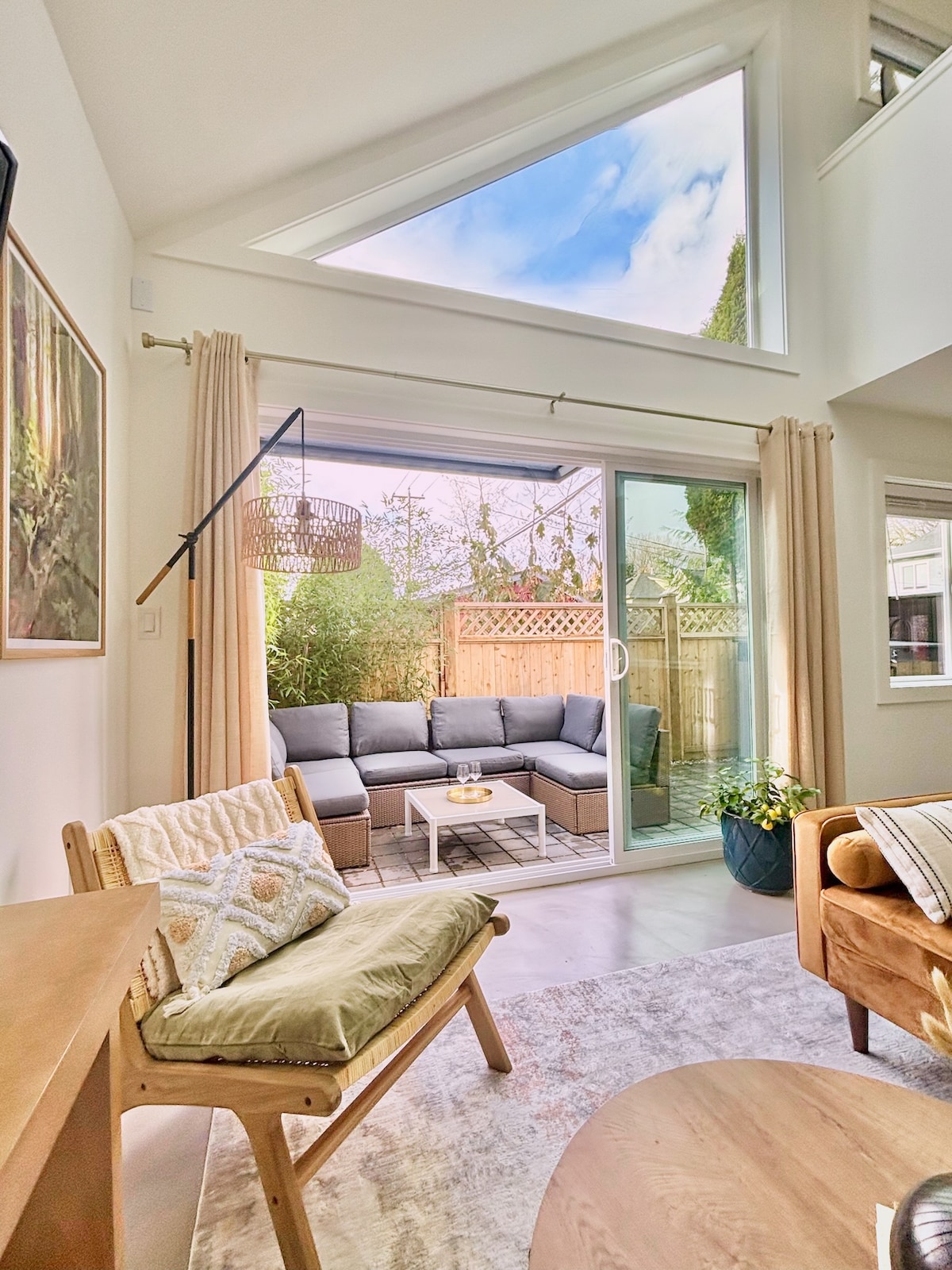 Welcome to your Scandinavian style large one-bedroom, one-bath, plus office retreat, perfect for couples or solo travelers. Enjoy a private entrance with keyless entry, office, wi-fi, and a fully stocked kitchen with coffee, tea, and espresso provided. Relax in your own private courtyard with a covered patio, fire pit, dining table, Weber BBQ, and seating. Ideal for work or relaxation—everything you need for a comfortable stay. Babies/toddlers welcome - highchair, car seat, pack n play, bed.