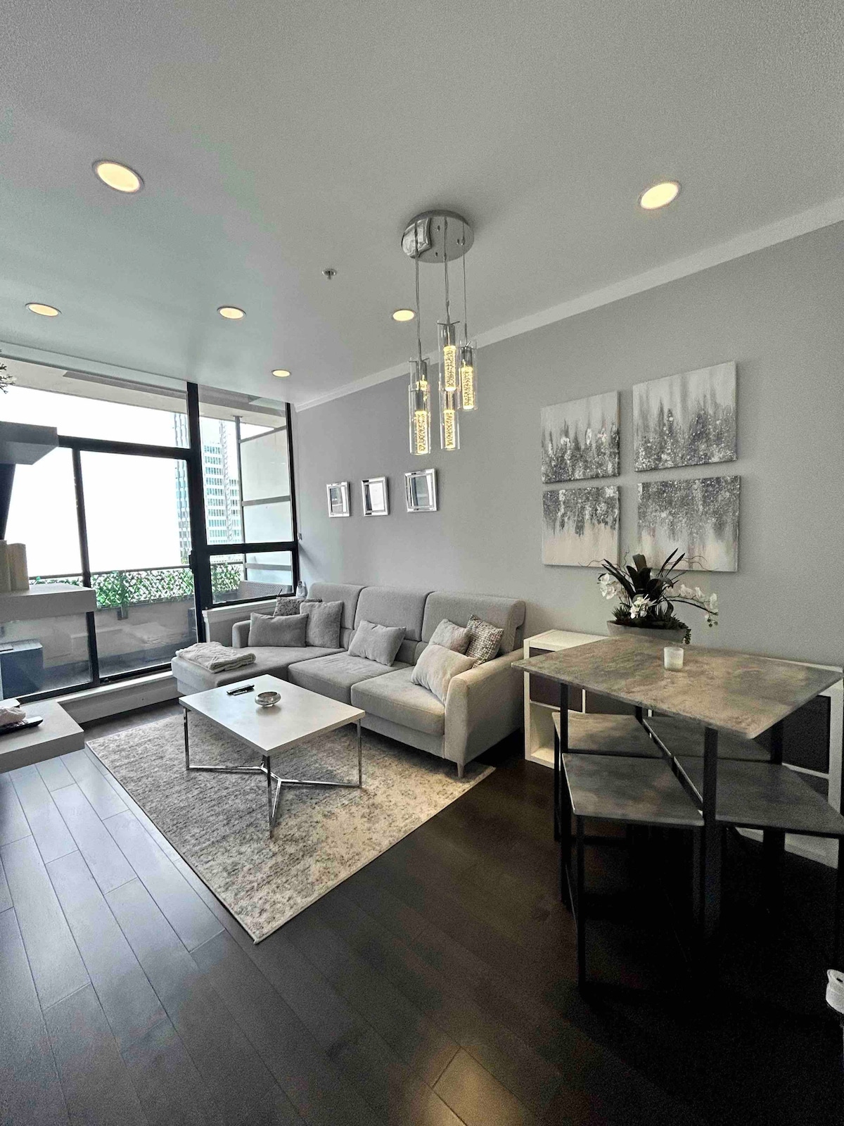 Spacious over 700 sqft loft, located in the heart of Vancouver. Best location in town. Close to Yaletown, Gastown, restaurants, pubs, Shopping malls. Enjoy city views from close to top level. Sleeps 4 with a queen bed upstairs and a comfy sofa bed easily convertible to a queen bed. You are welcome to play my tuned piano, but please no drinks on the piano. Alexa-powered automated blinds for added convenience. Smart TV. Portable AC. Free underground parking. Family friendly, pet friendly ❥(^_-)