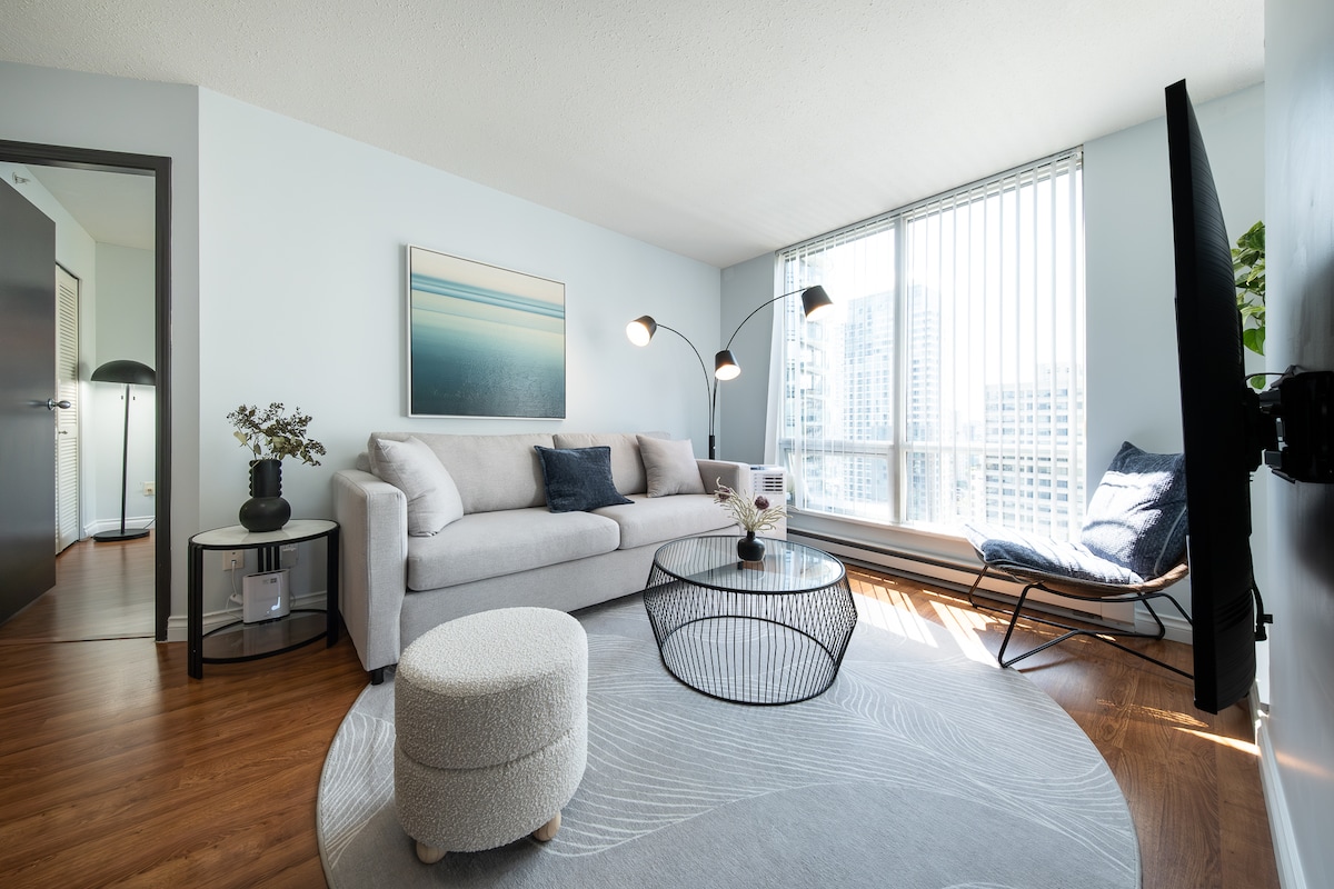 Arbutus Flat is a carefully curated home with a cozy attention to detail in its thoughtful layout & design; for either short or long-term living. A luxury high-rise corner-unit boasting BRAND NEW central A/C including panoramic views of False Creek, Olympic Village & Science World. Centrally located, family-friendly, adjacent Rogers Arena, BC Place & YVR Skytrain. Steps from the World's longest ocean sea-wall pathway stretching 30km's long - see all of Vancouver via bicycle. @ArbutusFlat