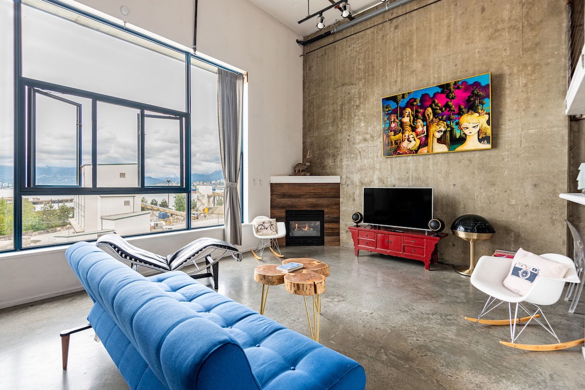 Welcome to my beautiful 1200 sq ft. New York style loft in downtown Vancouver's Gastown! This place is a true, fully stocked, home away from home with comfortable and stylish furnishings. Sit back on your couch and 58 inch smart TV, cook a meal in the fully stocked kitchen with a gas stove top, or enjoy a relaxing bath in your blue bathtub - the options are endless! Plus in-suite laundry (washer & dryer)!