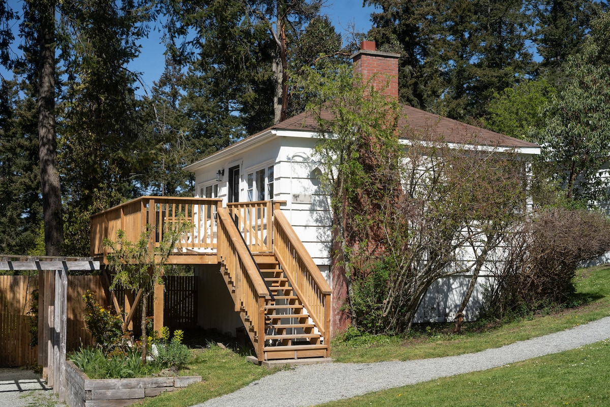 A beautiful 1-bedroom cottage with a wood burning fireplace to curl up around and play games or sip your favorite local wine. Relax on your private balcony and enjoy the stunning ocean views - the Rose cottage is your perfect getaway. - Newly renovated bathroom with beautiful walk in shower - Large private deck - Provided games - Bedroom with queen size bed - Kitchenette with small fridge, 2 burner stove, toaster, kettle, cooking tools, microwave, and sink.