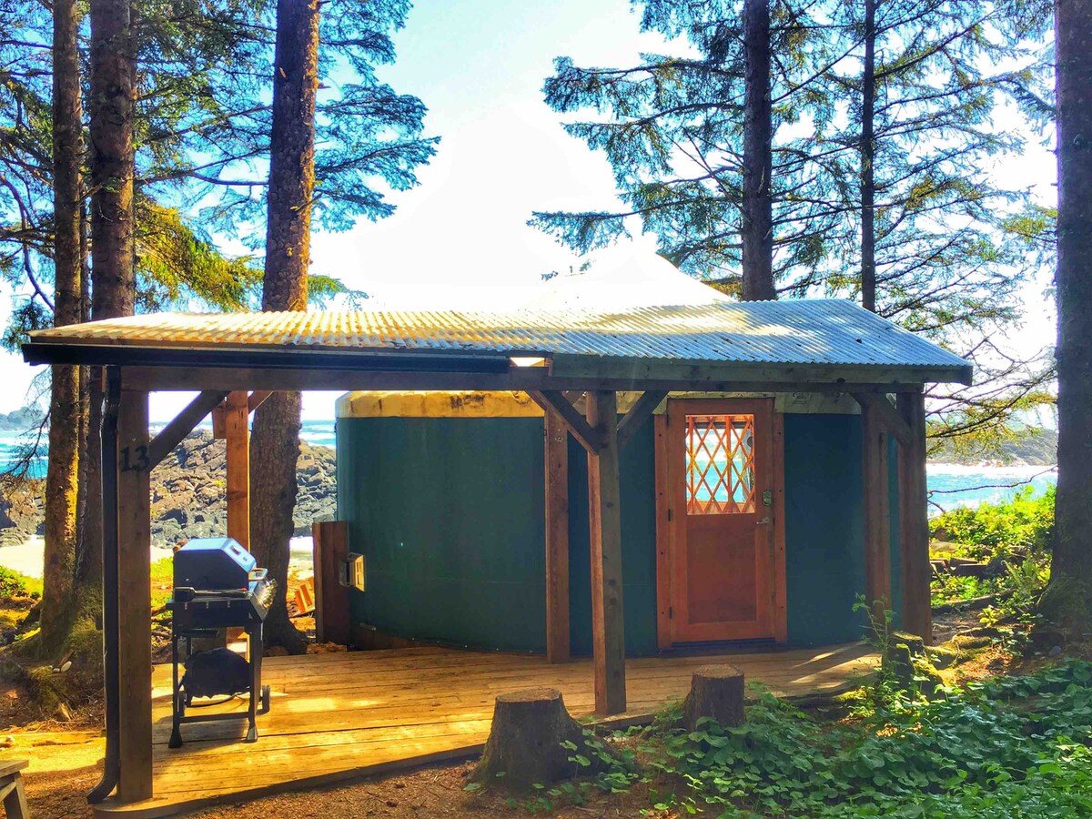 This luxurious oceanfront yurt is hidden in an ancient cedar grove providing privacy and an amazing backdrop to its unprecedented ocean front setting. Set atop an ocean front rock face with a fully covered patio. A fully equipped kitchen and spa like bathroom highlight the luxurious amenities included in this stay. An upscale romantic getaway like no other. Breakfast provided, our guests receive coffee, teas, and light breakfast fare.