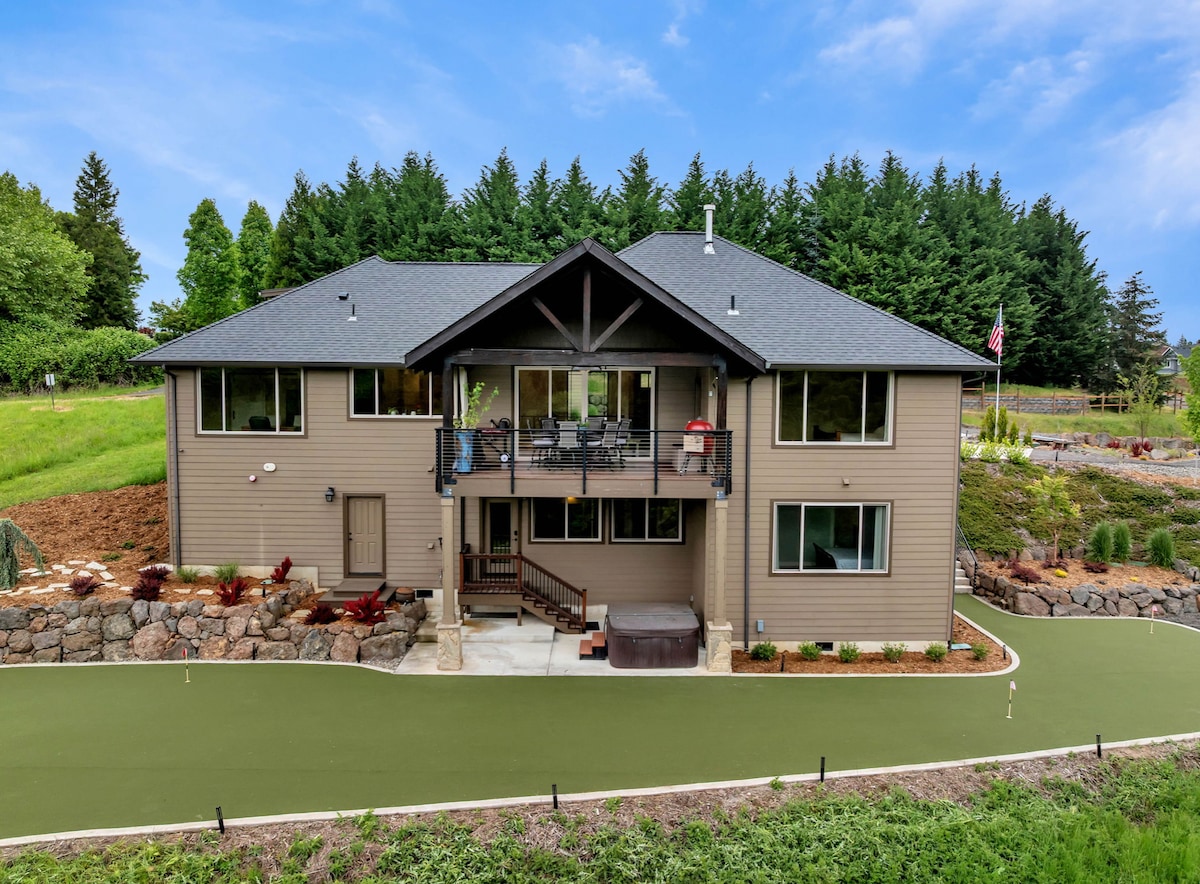 Pet Friendly! This gorgeous 2,634 sq/ft home sits on 5 private forested acres in Ridgefield Washington! Near many wineries, hiking, and ilani casino. 25-35 minutes from the Portland airport. The home comes with everything you need to have a relaxing vacation. The kitchen comes with equipment for cooking and baking. There is a gaming area with lots of board games and puzzles! The property has many areas to explore, adventure, and hot tub!!!