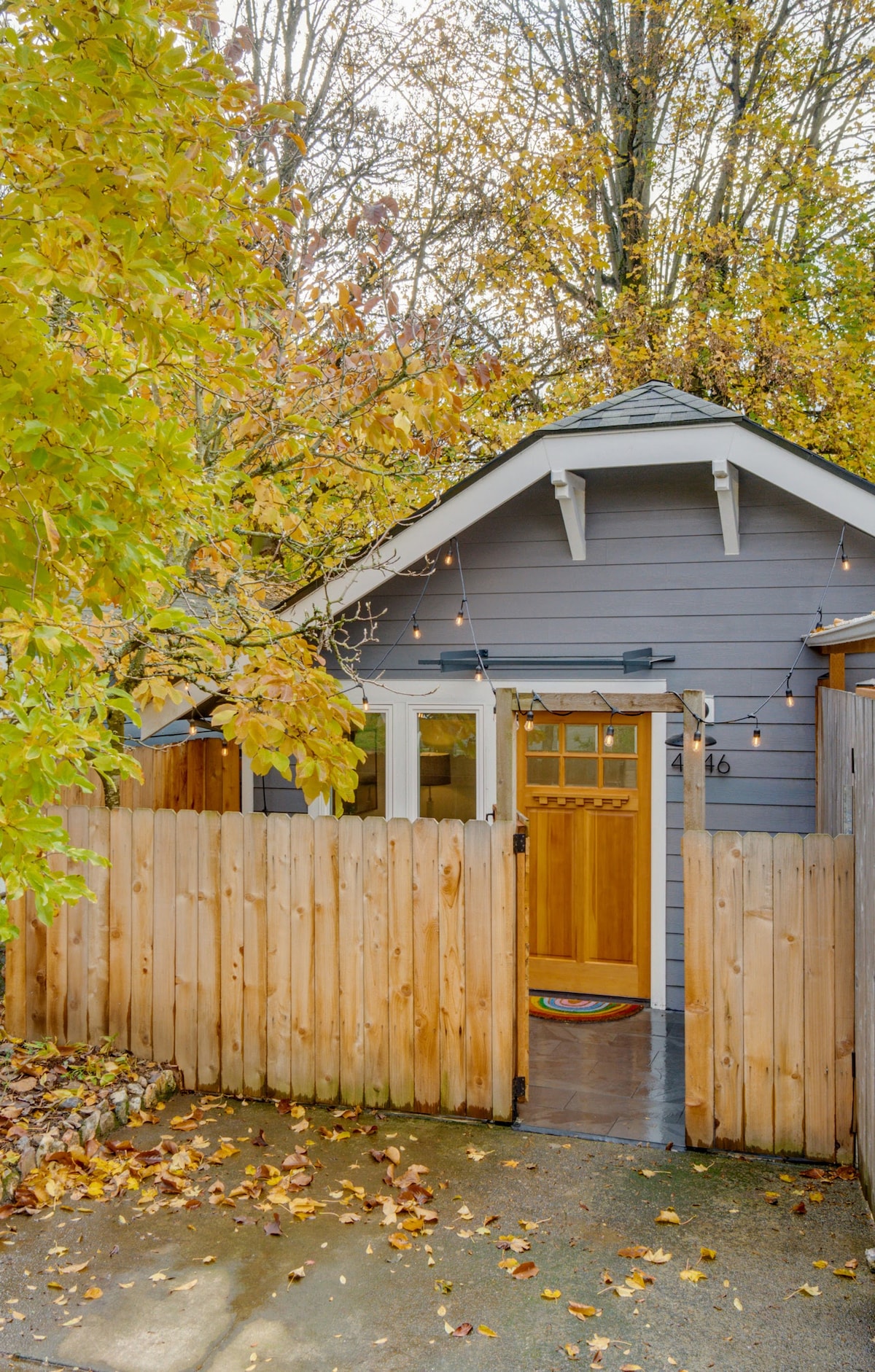 Detached, very small (300 sq ft) guest house in the Southeast Portland neighborhood of Woodstock. Lots of walkable eateries as well as New Seasons and Safeway within a 5 minute walk. Close to Reed College, Woodstock Village, Springwater Trail, Southeast Portland Neighborhoods, Public Transportation. You’ll love the location, the outdoors space, and the ambiance. Good for couples, solo adventurers, and business travelers. TV (Netflix enabled!), A/C (summer months), heat, coffee, fridge/freezer.