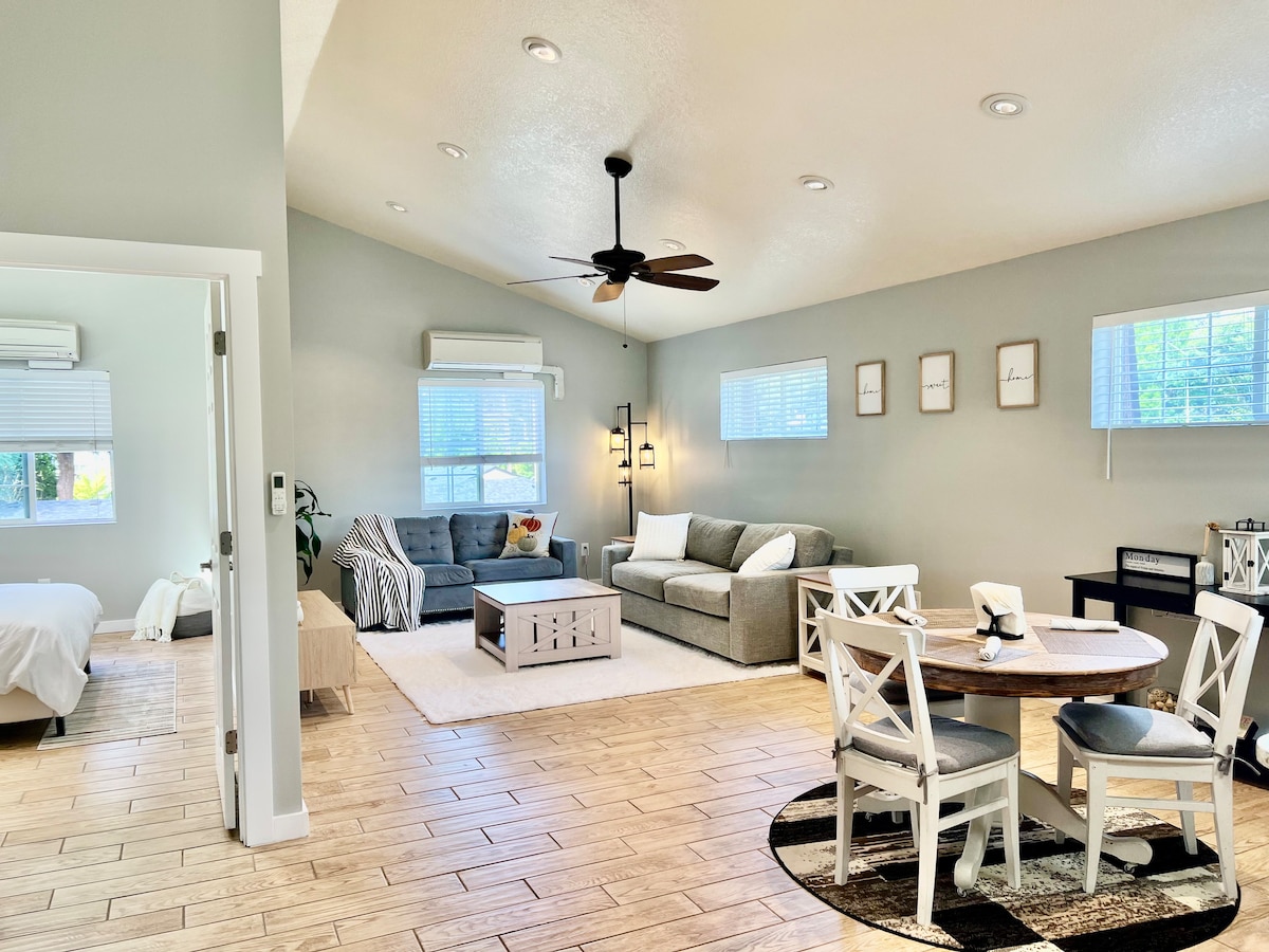 Newly-built in ’22, this beautifully designed guesthome and everything in it is brand new, so you can enjoy all the comforts of home. The 11-ft vaulted ceiling, full-size kitchen and abundance of natural light are just a few things that make this 565 sqft, one bedroom home live larger than its footprint. Perfectly located 1.8 miles to Dtwn Vancouver & 15 mins to PDX airport and Portland Oregon; it’s the perfect home base for your stay. *Professionally Cleaned and Sanitized between each stay*