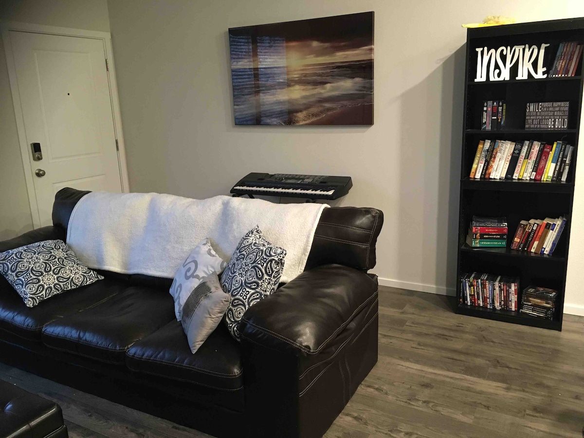 通风公寓,配备全功能厨房、加大双人床、洗衣机+烘干机
